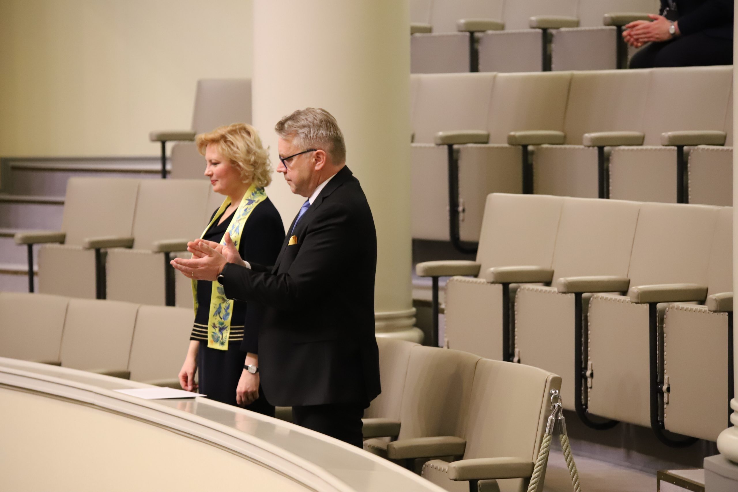 ”Ukrainan asia on meidän” – Eduskunnassa liputettiin Ukrainalle ja kansanedustajat taputtivat seisten Ukrainan Suomen suurlähettiläälle