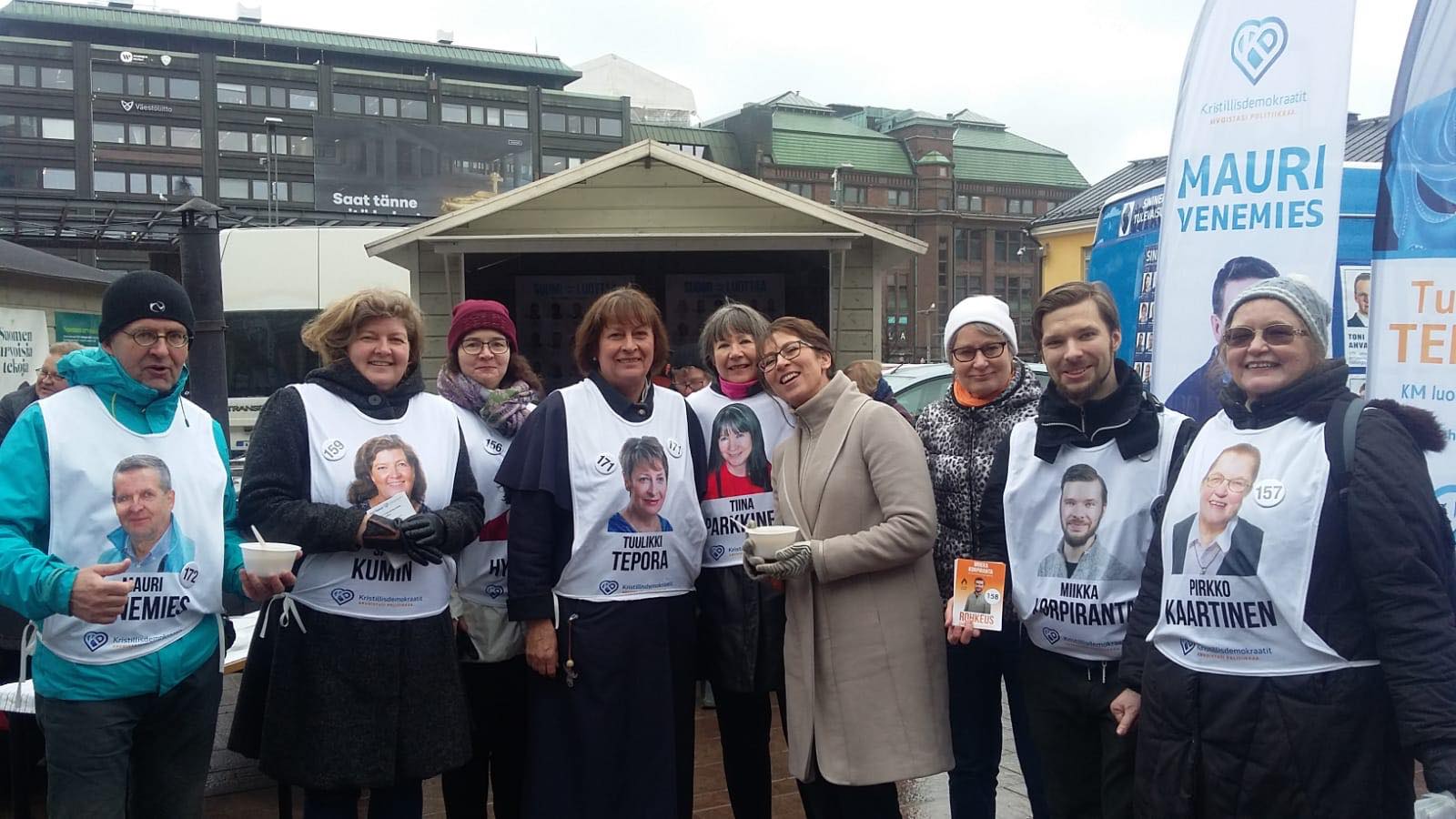 Tampereen Keskustorilla Kristillisdemokraattien vaalimökki päivystää koko viikon – Essayah vierailee torstaina