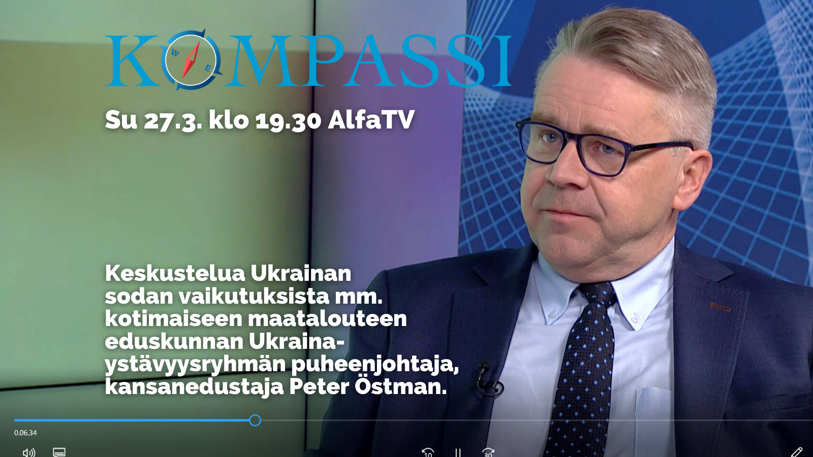 Kompassissa su 27.3. kello 19.30 Alfa-TV:llä mm. Ukrainan sodan vaikutuksista maatalouteen – haastateltavana Peter Östman