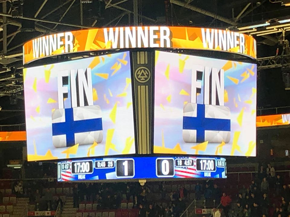 Jääkiekon U20-maailmanmestaruuskisojen neljännesvälierässä Suomi passitti ennakkosuosikin Yhdysvallat kotimatkalle voitettuaan ottelun. Voittomaalin teki Joona Oden Kristian Tanuksen nappisyötöstä. (Kuva Sari Tanus)
