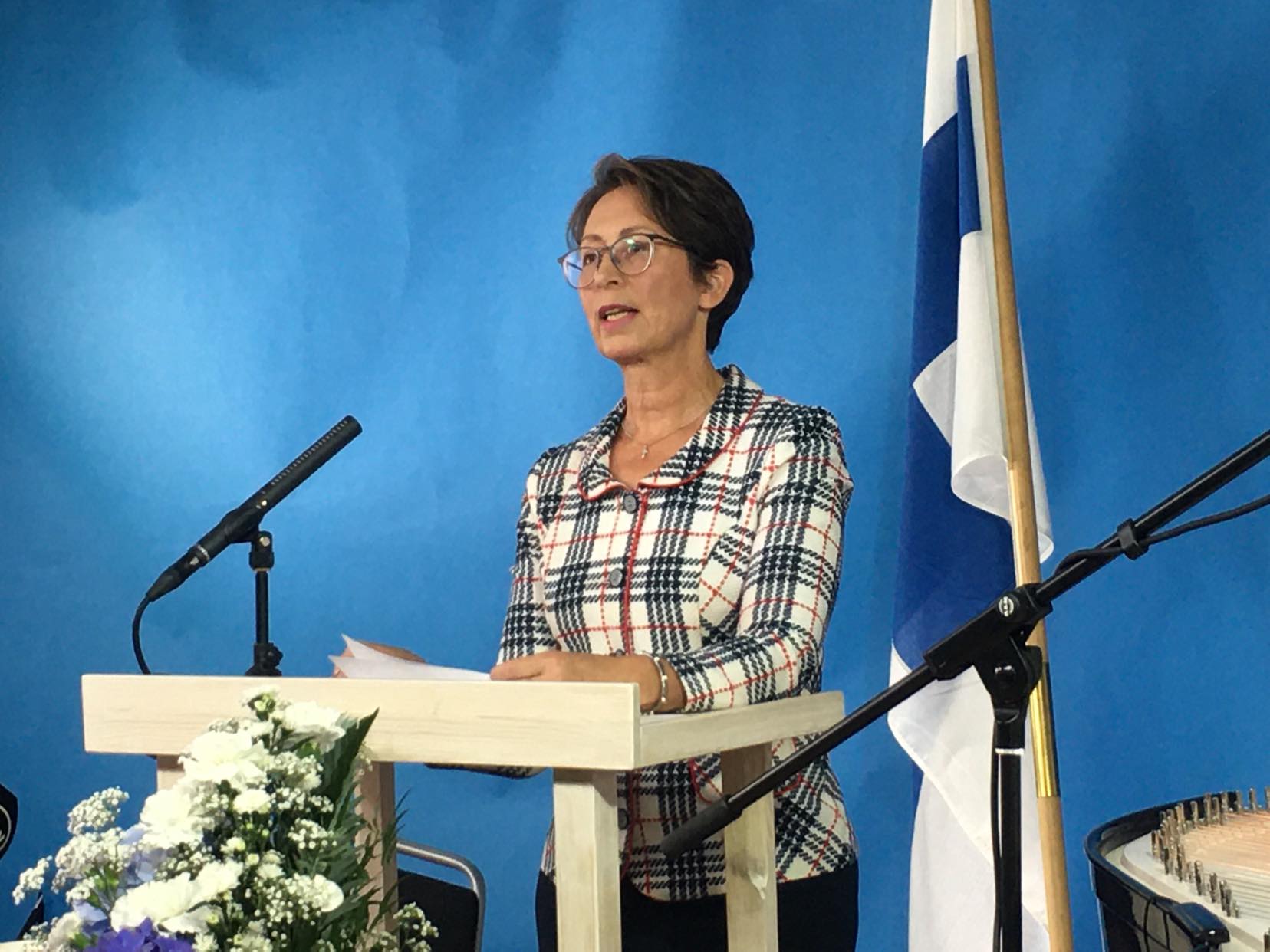 Sari Essayah puhui Porissa Satakunnan kristillisdemokraateille. Essayah valittiin KD:n puheenjohtajana uudelle kaudelle elokuun lopun puoluekokouksessa. (Kuva Kristiina Kunnas)