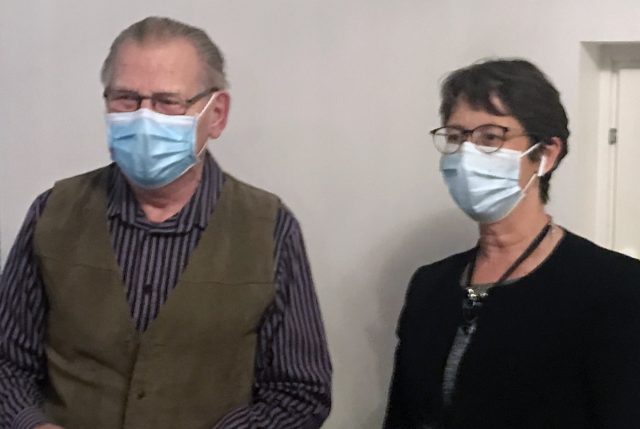 Kokouksessa vieraili myös kristillisdemokraattien puheenjohtaja Sari Essayah, joka kiitti piirin pitkäaikaista aktiivia Tauno Häkkistä vuosien palveluksesta puolueelle ja Lapin piirille. (Kuva: Erkki Hurtig)
