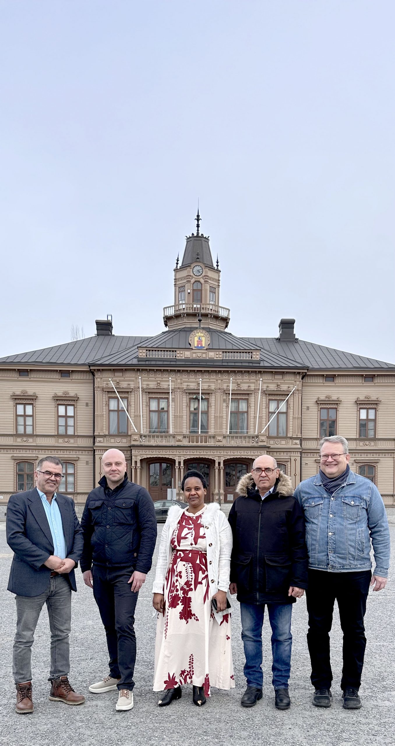 Kristillisdemokraattien maahanmuuttaja-kuntavaaliehdokkaat Shiraga Sediqi (ehdokasnumero 67), Petro Fedorian (58), Mimi Nyabararuta (64), Miragha Sediqi (66), Andrew Kallman (62) toteavat, että Pietarsaaressa tuntee itsensä nopeasti tervetulleeksi.