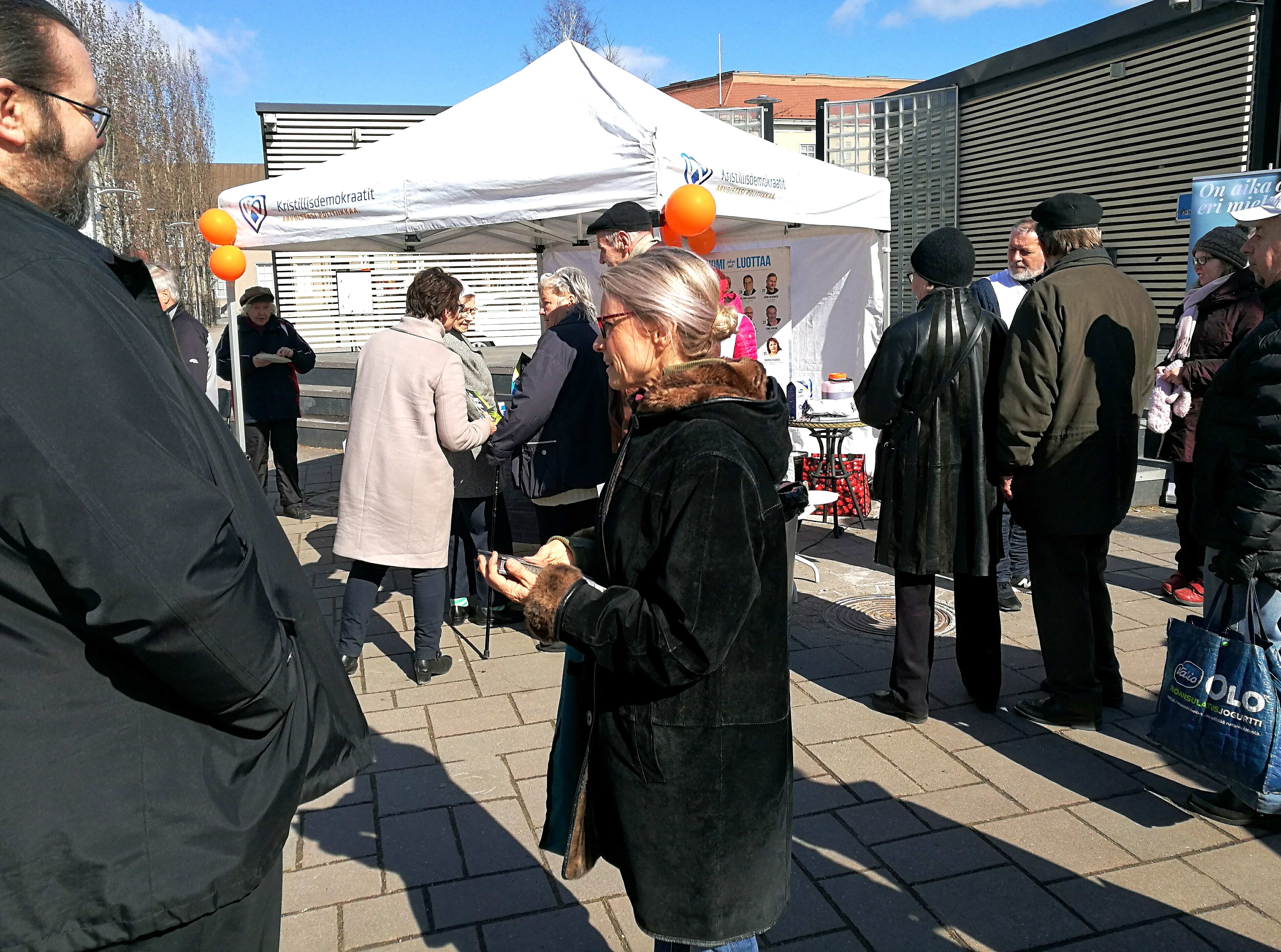 Kristillisdemokraattien teltalla on myös lettutarjoilu. Puolueen puheenjohtaja Sari Essayah oli aamupäivällä Tampereella ja vierailee nyt riihimäkeläisten tavattavana klo 14-15.