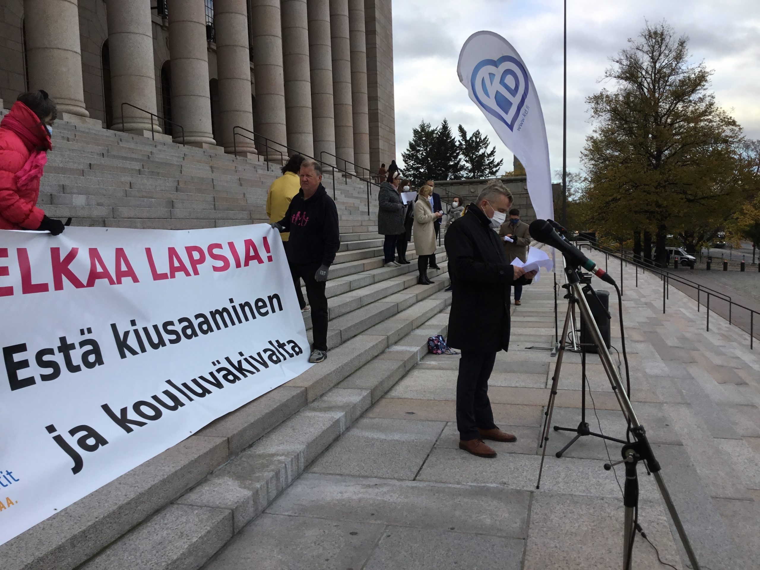 KD Naiset järjesti mielenilmauksen koulukiusaamista vastaan keskiviikkona 14. lokakuuta Eduskuntatalon edessä.