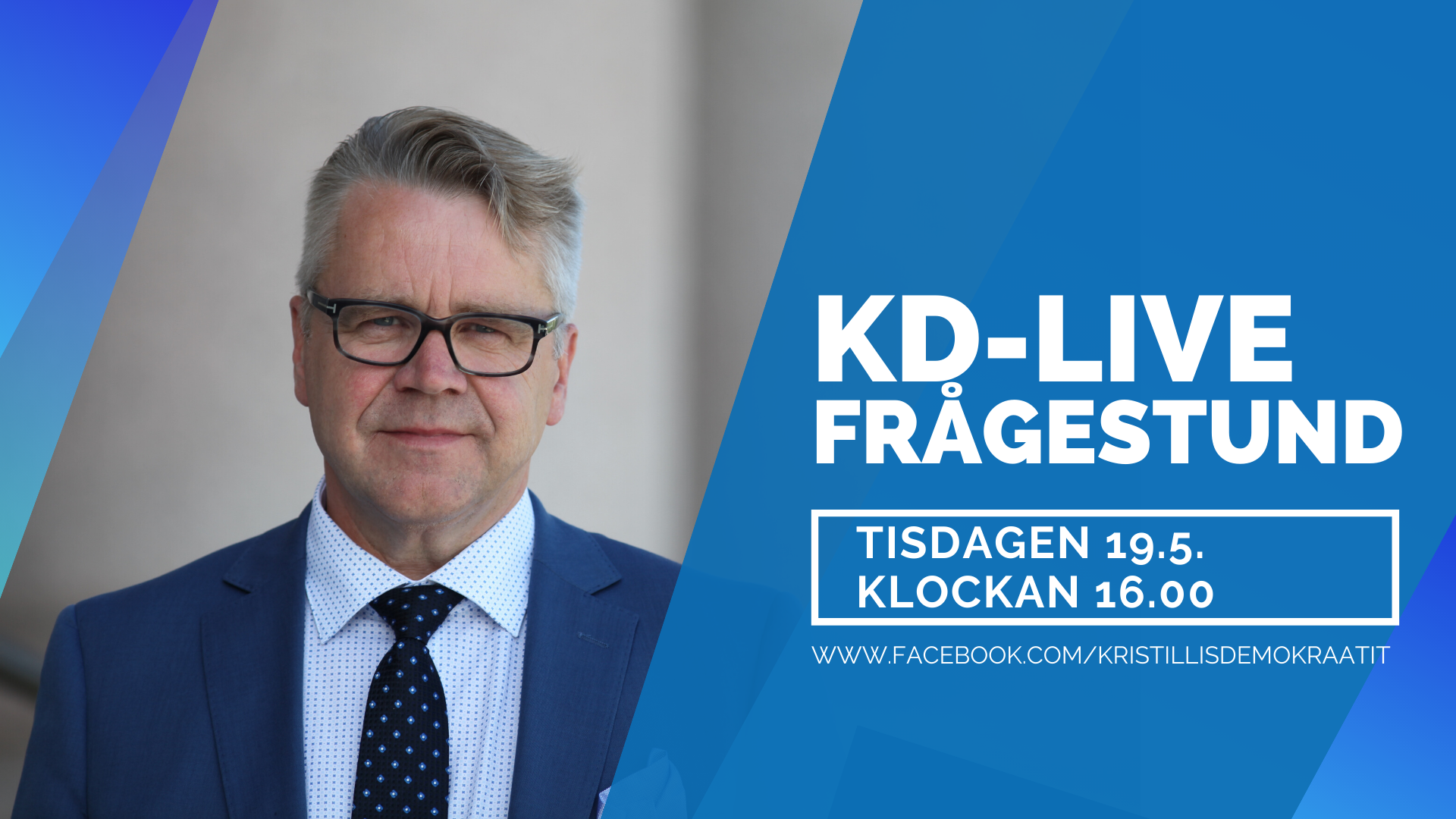 Seuraava Live-kyselytunti Kristillisdemokraattien julkisella Fb-sivulla pidetään tiistaina 19.5. kello 16 alkaen.